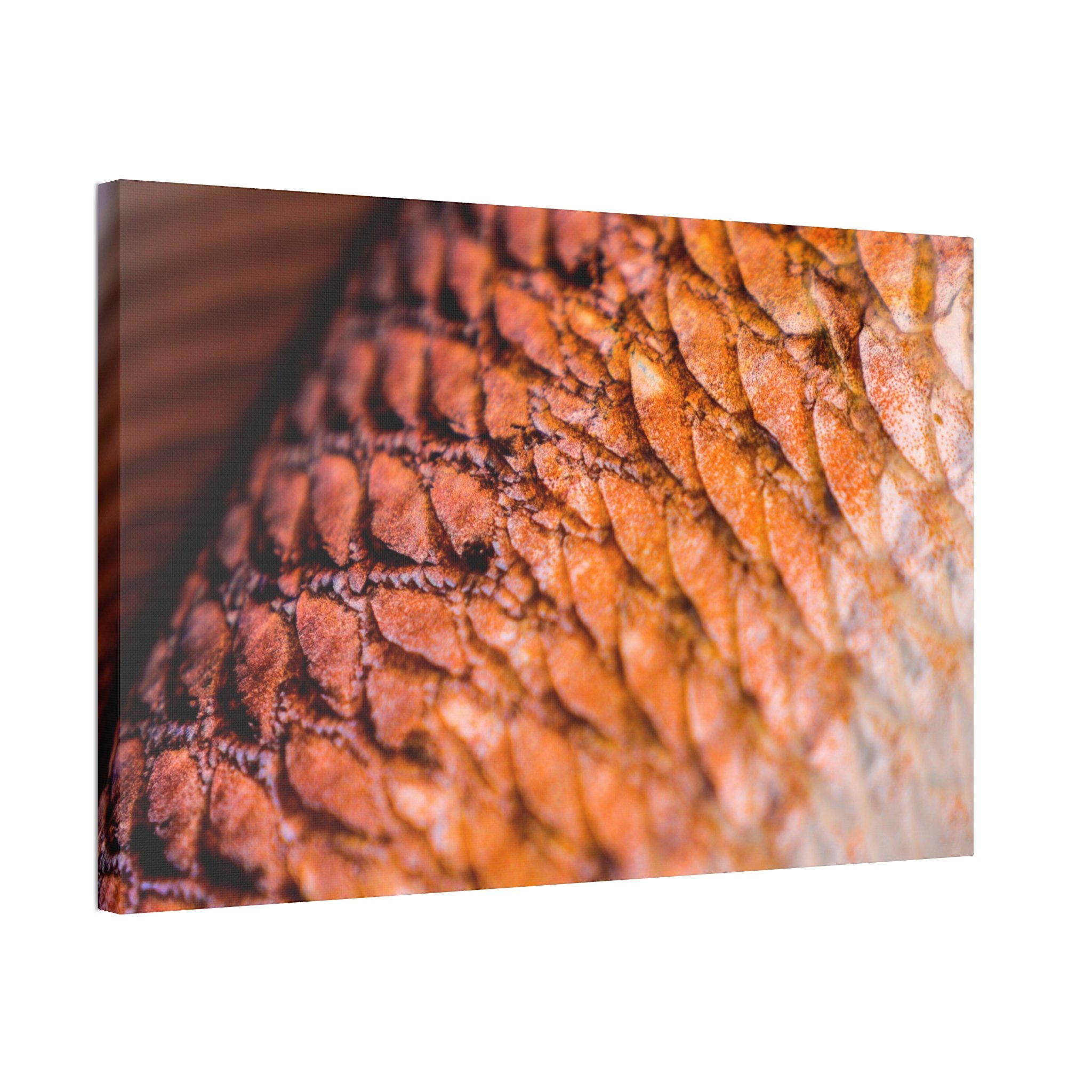 A close-up study of redfish scales from the Louisiana marsh, this piece turns natural texture into something almost metallic. Each overlapping scale catches the light like hammered copper, revealing the quiet strength and resilience of a fish built for grass, tide, and current. The warm rust and bronze tones echo the mud flats and spartina grass of the Gulf Coast, while the tight patterning feels both organic and armored—nature’s own chainmail.